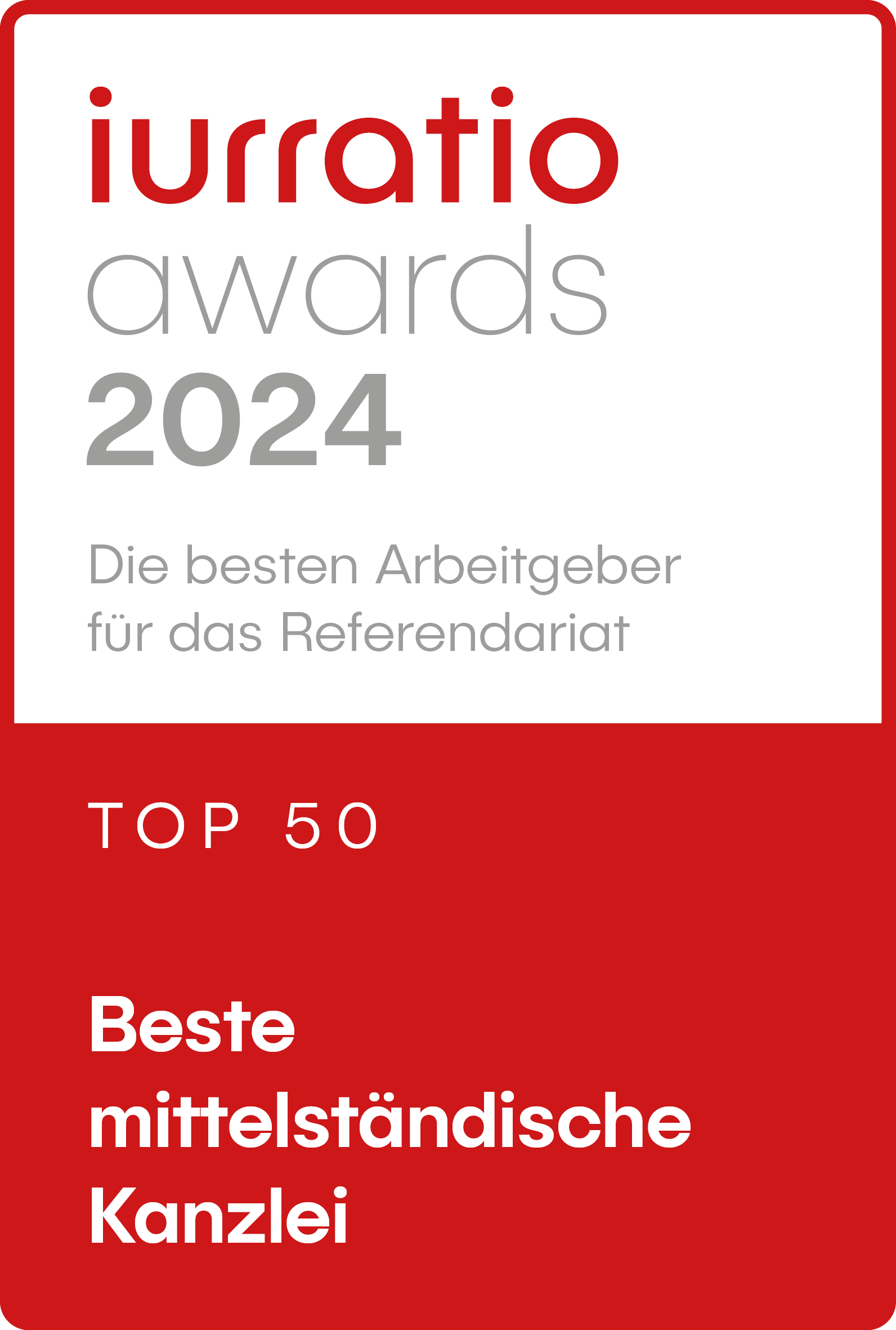 Unsere Leistungen werden anerkannt von JUVE, BestLawyers, Who’s Who Legal, Chambers and Partners, Handelsblatt, FOCUS, brand eins, The Legal 500, WirtschaftsWoche, Global Law Experts, Kanzleimonitor, Iurratio, Trendence.